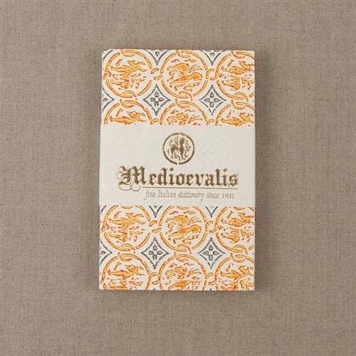 Rossi 1931 Medioevalis luxury art pads are made in Florence, Italy using the Amalfi paper making process. Artist pads and are available in cream and white, in two sizes. There are 20 sheets per pad plus 1 blotting sheet with Deckled edges which adds an elegant touch to these pads; top edge has self-deckling perforation. Perfect for wet media such as watercolor, tempera, acrylic, or collage with liquid glue. Weight of paper is 310 gr m^2. A6 sheets are approximately 4 1/8" by 5 7/8". Note: Cream colored paper comes in orange packaging, white paper comes in blue packaging.