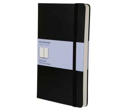 Moleskine Sketchbooks are hardbound and are perfect for any creative endeavor- sketching, light washes, or writing. Larger than the pocket size, the large size is still very portable and fits easily in a pack or purse. Never be without a sketchbook again! Hardbound books come with black covers and have rounded corners (helps them slip in and out of your pocket or bag easily). Large size measures 5 inches by 8 1/4 inches (13 by 21 cm). All Moleskine books feature an expandable pocket inside the back cover and an elastic closure. 104 pages of acid-free, heavy weight, 160 GSM paper.